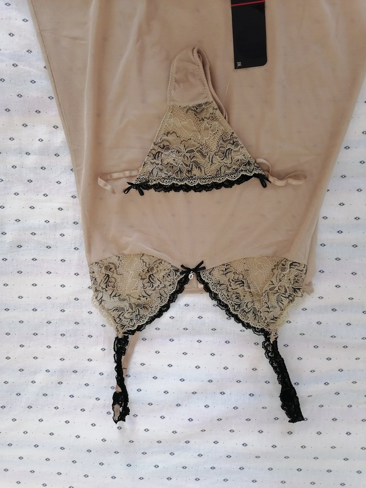 Bej renkte, nakışlı ve dantel detaylı uzun bohem gece elbisesi ve takımı