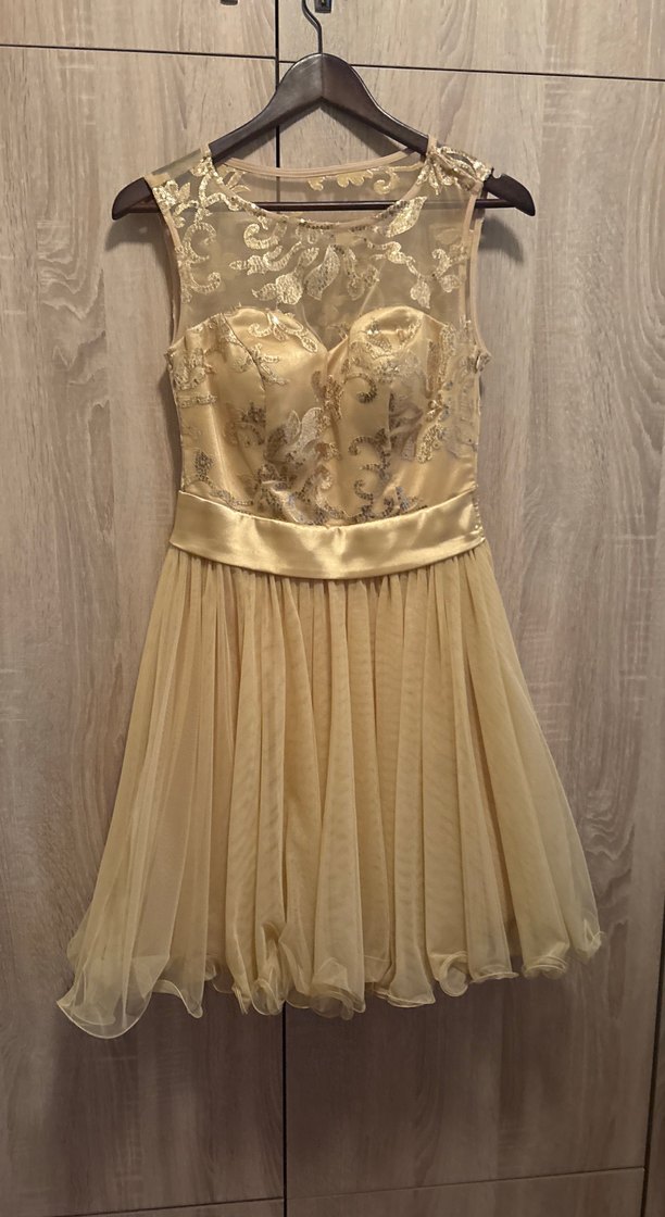 Nakışlı dantel detaylı, straplez ve bele oturan bej midi abiye elbise, yumuşak ve akışkan etek.