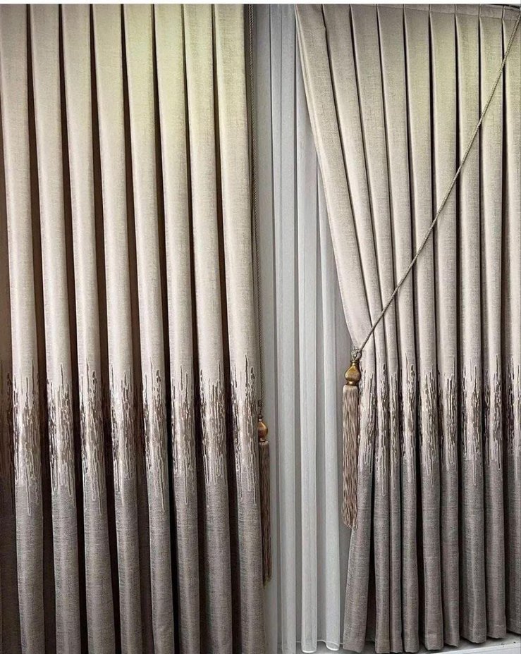 Bej Nakışlı Modern Klasik Perde
