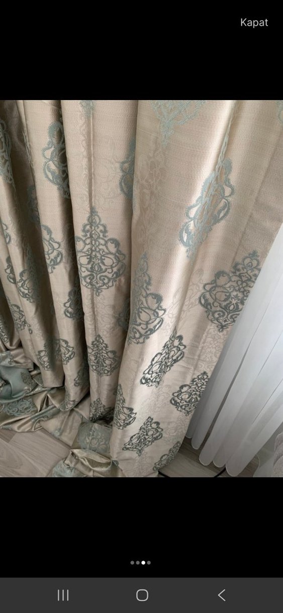 Bej renkte, gri nakışlı modern klasik tarzda perde, mekâna zarafet katar.