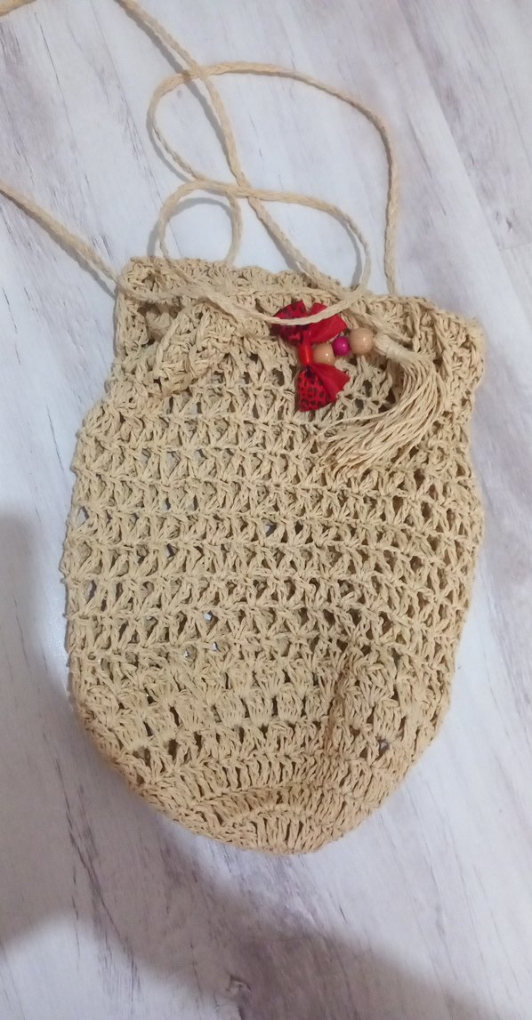 Bej nakışlı örgü detaylara sahip, yumuşak dokulu bohem tarzda kadın çantası, günlük kullanım için uygundur. deniz çantasıdır sorunsuzz