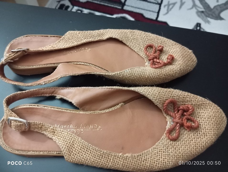 Bej renkli, nakışlı örgü espadriller, tokalı kayışlarla günlük kullanıma uygun vintage bohem tarzda.