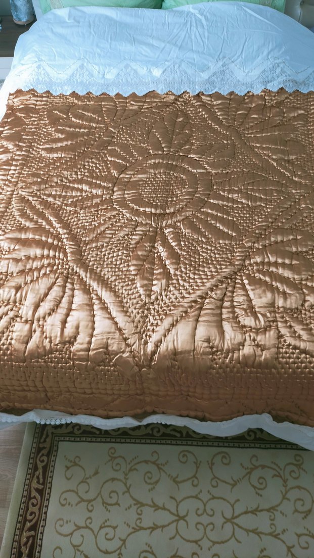 Bej renkli yorgan, parlak ve nakışlı desenleriyle yatak odanıza şıklık katıyor. hiç kullanılmadı çeyizlik üründü hurcun içinde ürün fazlası olduğunu için satmak istiyorum özel yapım almak isteyen üstündeki çarşafı ile birlikte verilecektir kendim yaptım dantelini