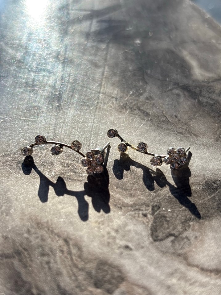 Bej renkte, nakışlı ve pullu mini kadın küpeleri, minimalist ve şık bir tarz için uygun, açık hava etkinlikleri için ideal. ✨