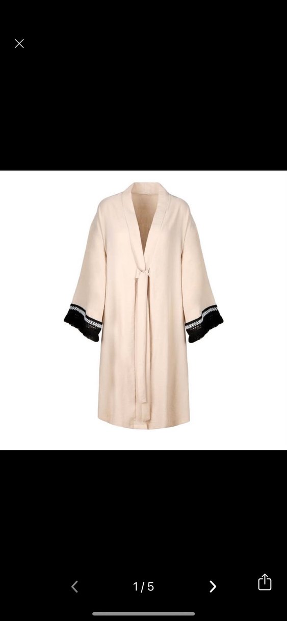 Bej renkli, nakış detaylı, uzun kollu ve bol kesim bohem kimono. Siyah püskül detaylı, satenimsi kumaş ve yaka detayına sahip klasik şıklık sunar.
