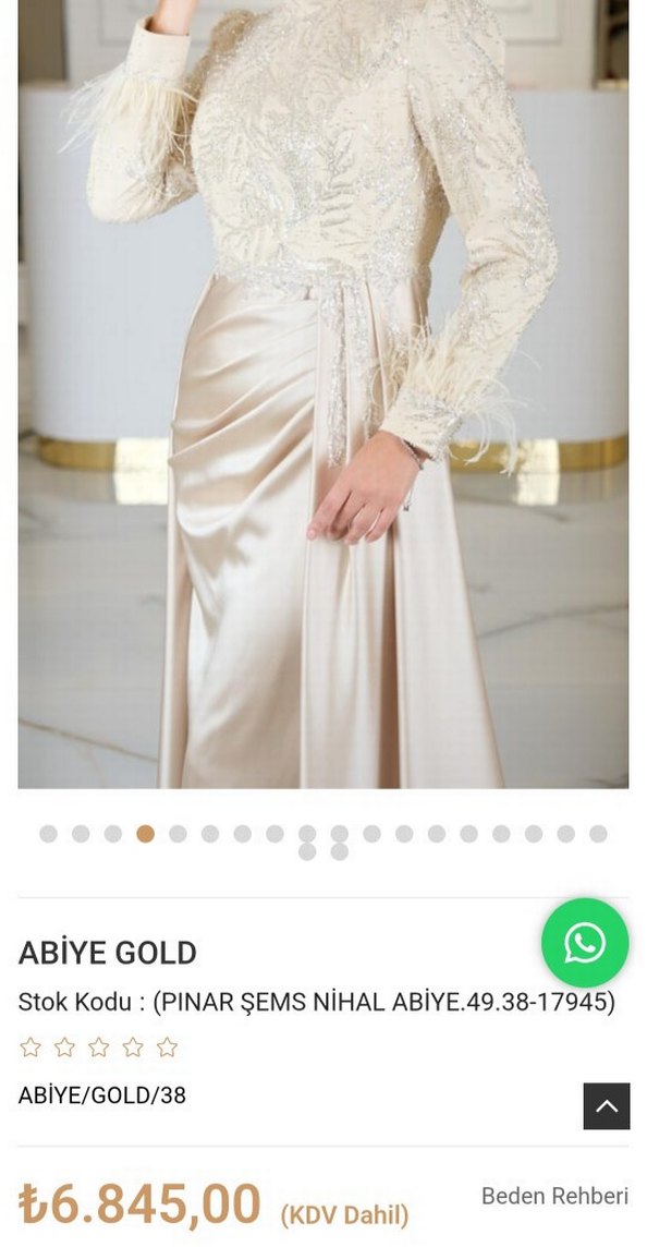 Yüksek yakalı, uzun kollu ve tüy detaylı bej abiye elbise. Nakışlı üst kısmı ve drapeli saten etek ile düğünler için uygun şık model. ✨