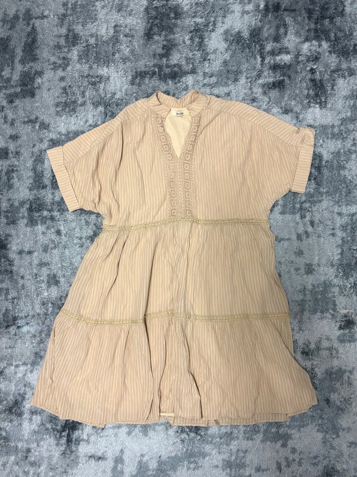 Bej Nakışlı V Yaka Bohem Midi Elbise