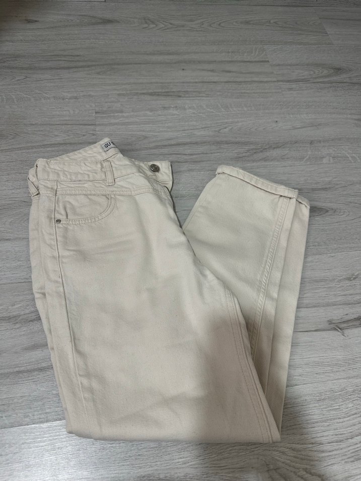 Bej renkte, pamuk kumaştan yapılmış, normal boy ve regular fit kot pantolon. Günlük kullanıma uygun, sade ve rahat bir tarza sahiptir.