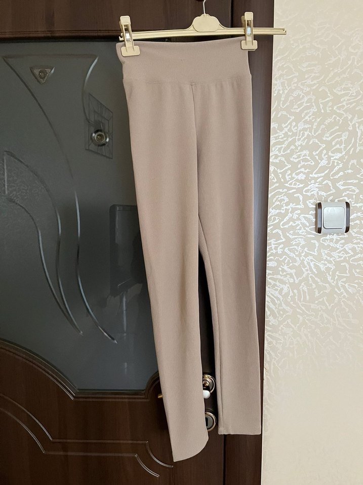 Yumuşak sentetik kumaştan, normal boy ve bej renkte, rahat ve şık kadın tayt. Günlük kullanıma uygundur.