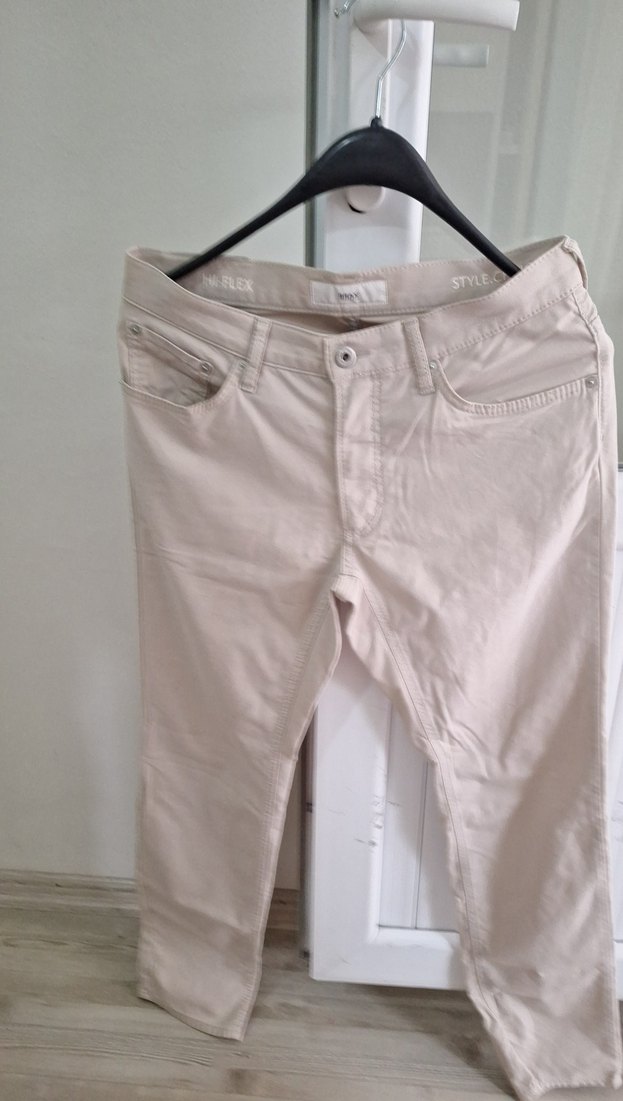 Bej renkli, kemerli ve normal kesim erkek pantolon. Düz desensiz, midi boyda ve sentetik dokulu kumaştan üretilmiştir. Günlük kullanıma uygundur.