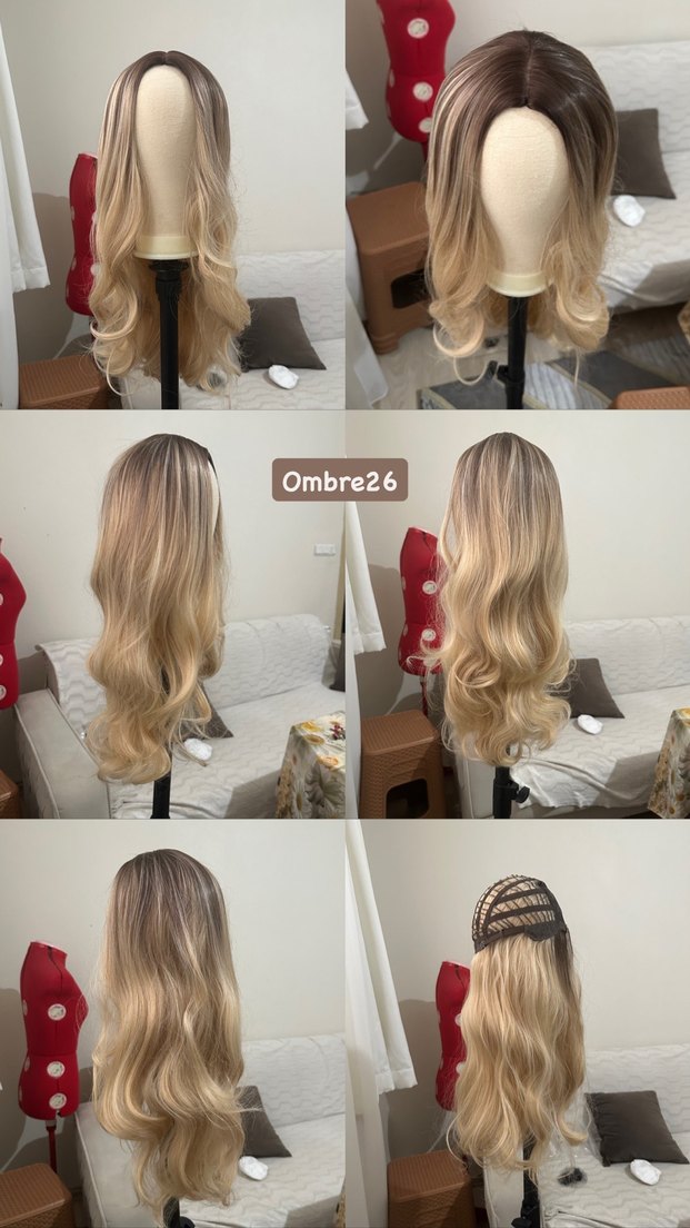 Bej ombre dalgalı sentetik peruk, minimalist ve çağdaş bir görünüm sunar. Ombre26 etiketiyle zahmetsiz şıklık sağlar. ✨