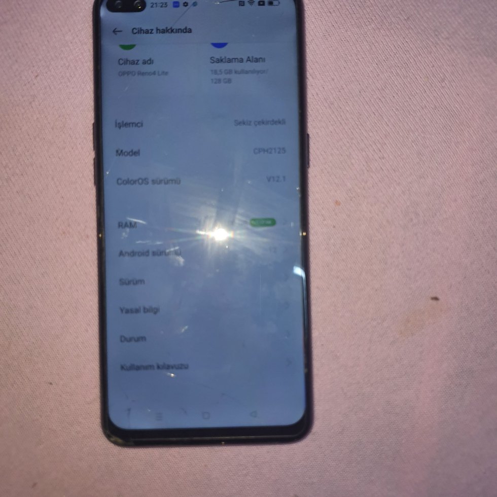 128 GB depolama alanı ve sekiz çekirdekli işlemciye sahip bej OPPO Reno4 Lite Android telefon. ColorOS V12.1 ve 8 GB RAM bulunur. ekran değişti şuan sorunsuz sadece ekran konuşurken bazen kapalı duruyor bazen kapanmıyor ekranı takan arkadaş arka jelatini sökmeden takmış sanırım ondan başka sorun yok kozmetik olarak 10 üzerinden 8 alır 2 adet kılıf hediye