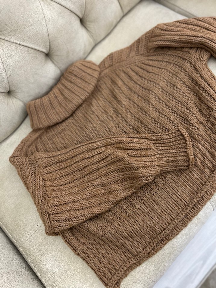 Bej renkli, örgü kumaştan yapılmış boğazlı ve uzun kollu kadın kazak. Rahat kesimi ve midi boyu ile günlük kullanıma uygundur. Teklif olur