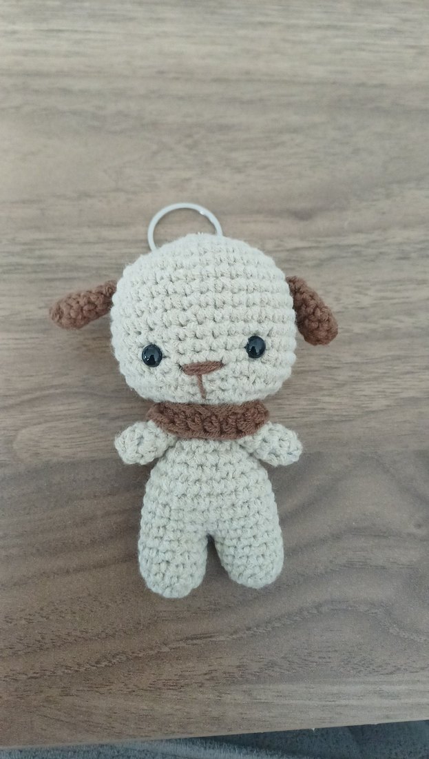 Bej renkli, örgü dokusuyla sade ve bohem tarzda anahtarlık. Yumuşak dokulu, kolay takılabilen halka içerir.