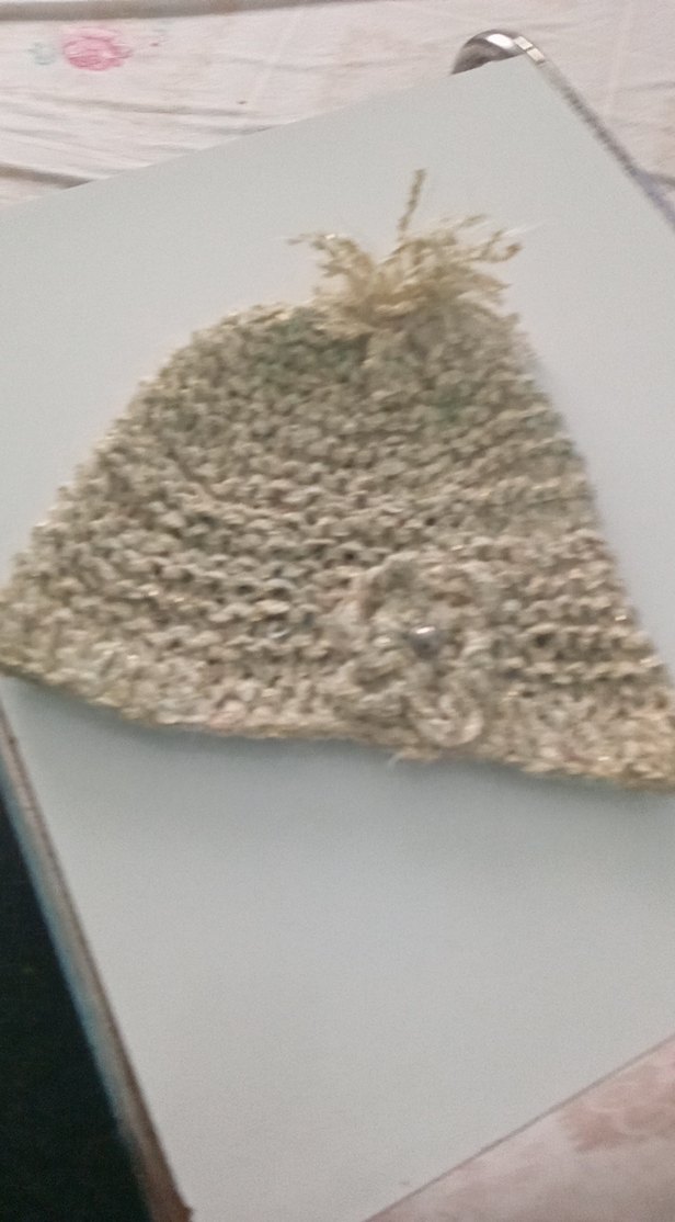Bej renkli, örgü ve çiçek detaylı kadın bere, rahat ve bohem tarz için uygundur.