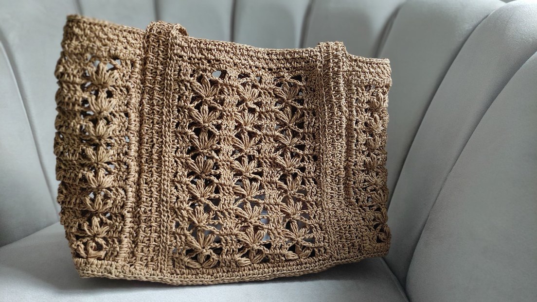 Bej renkli, örgü kağıt ip bohem tarzda kadın çantası, günlük kullanıma uygun. Sadece astar çalışması yapılmadı