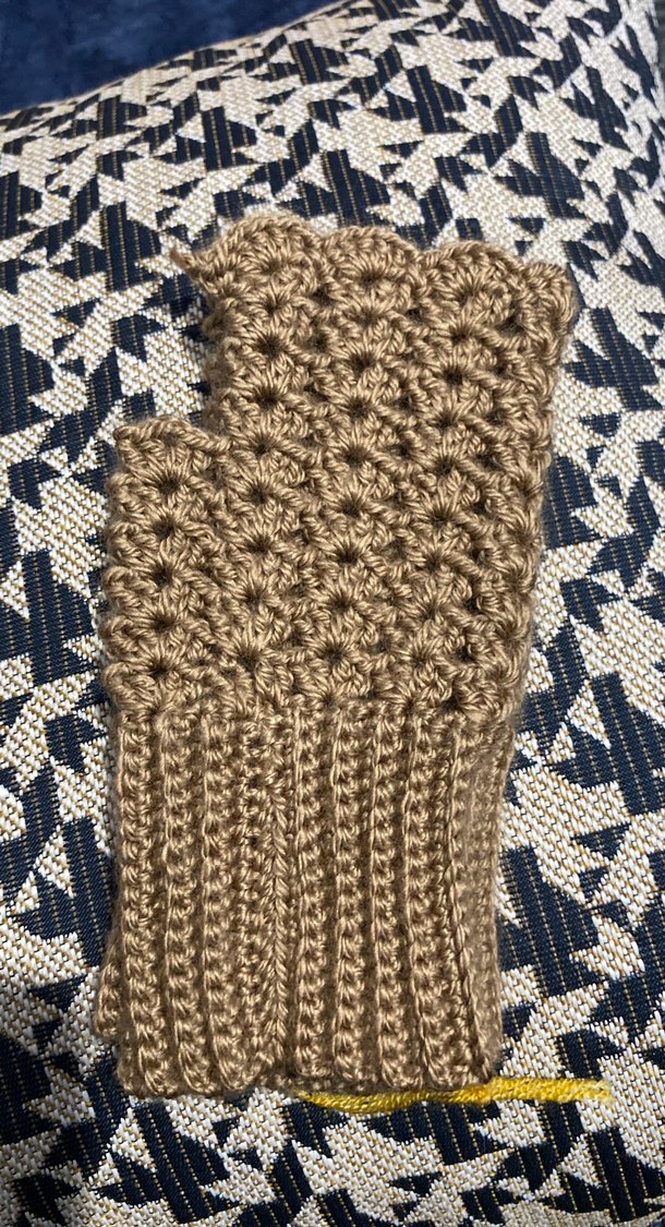 Yumuşak örgü kumaştan yapılmış, bej renkli, bohem tarzda kadın eldiveni. Rahat ve retro bir görünüm sunar.