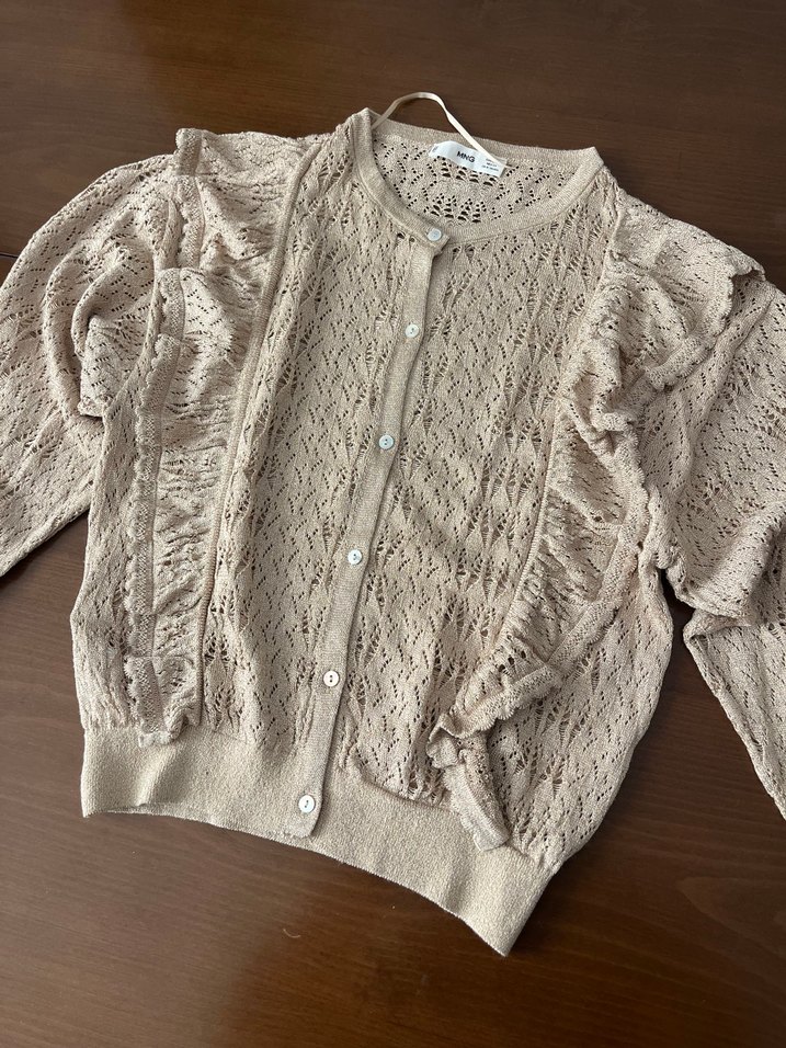 Manto hırka hiç giyilmedi Bej renkli, örgü dokulu, uzun kollu, bohem tarzda, midi boy, salaş kesim kadın hırka. Günlük kullanıma uygun, yumuşak ve rahat kumaşlı.