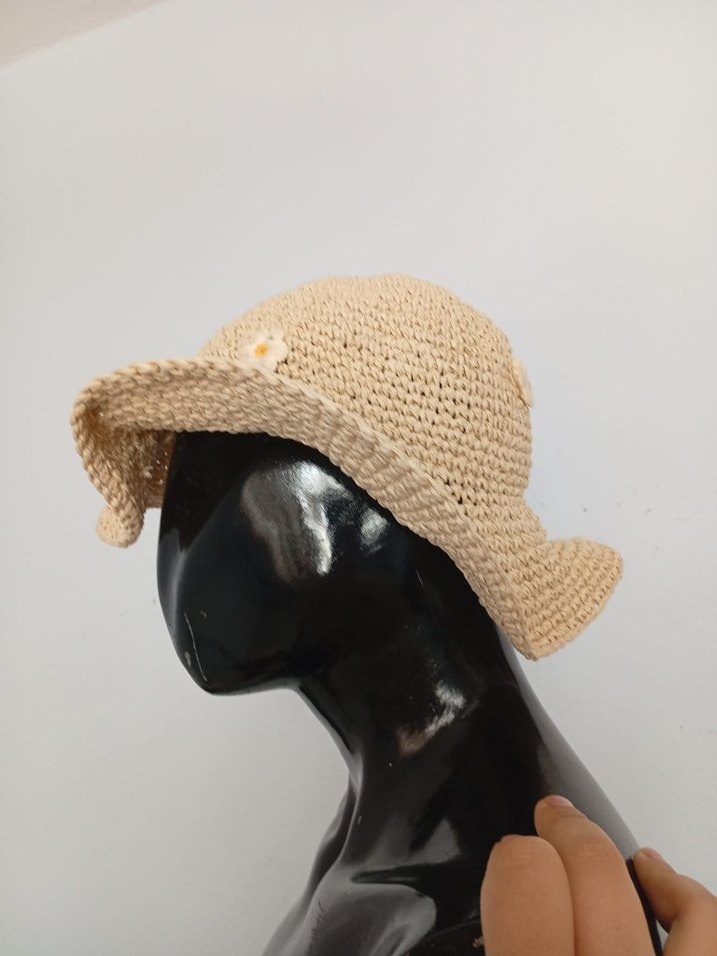 Bej renkli, örgü dokulu bohem tarzda kadın şapka. Hafif ve yumuşak dokusuyla minimal ve retro görünümlere uyum sağlar.