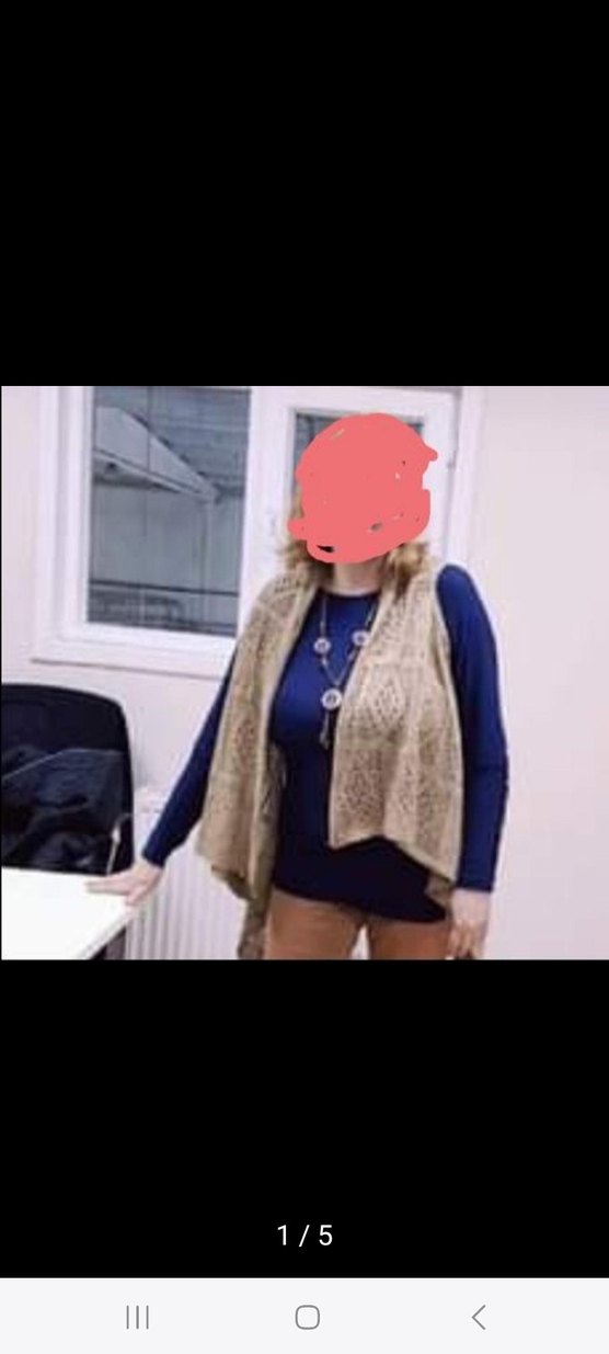 Bej renkli, örgü dokulu, bohem tarzda kadın yelek. Kolsuz, halter yaka ve vücuda oturan kesimiyle günlük kullanıma uygundur.