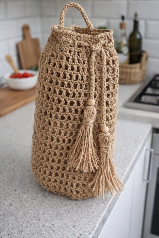 Bej Örgü Bohem poşetlik