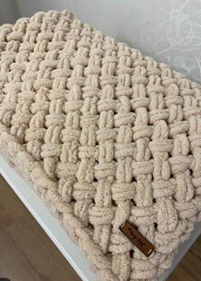 Desensiz, yumuşak ve kalın örgü dokusuna sahip bej renk çocuk battaniyesi, sıcaklık ve konfor sağlar.
