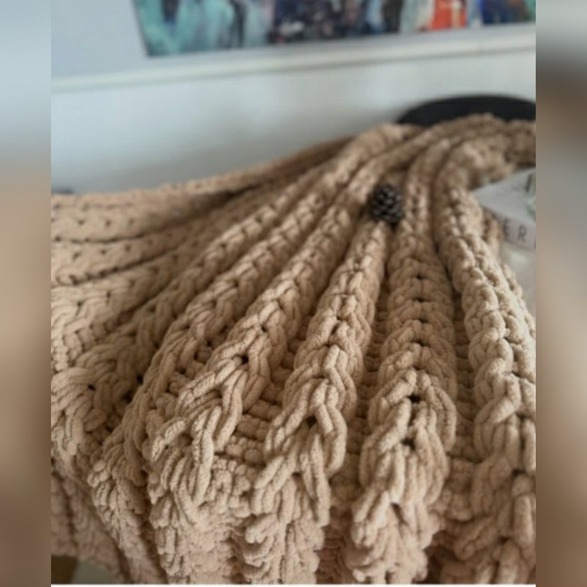 Bej renkli, örgü kumaştan yapılmış çocuk battaniyesi, yumuşak dokusu ve desensiz tasarımıyla rahatlık sağlar.
