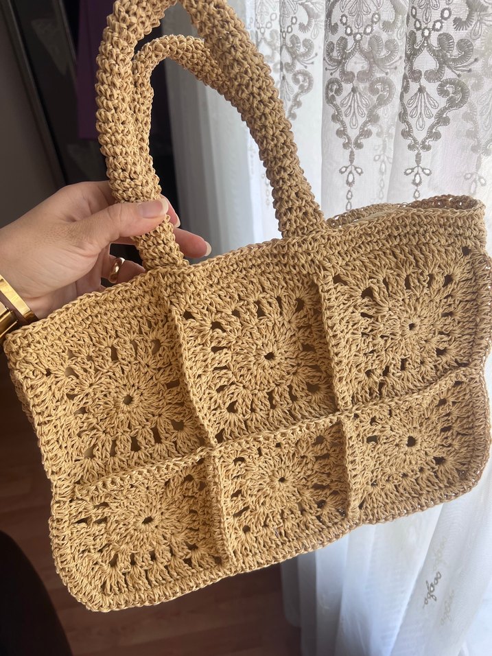 El emeğim. Bej renkli, dantel detaylı örgü kadın çantası. Bohem tarzda, hafif renkte ve günlük kullanıma uygun, retro ve hippie havası taşıyor.