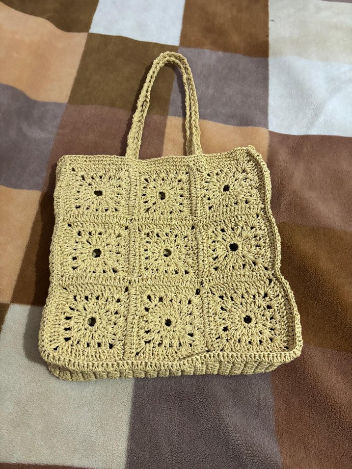 Bej renkli, dantel detaylı örgü kadın çantası. Bohem tarzda, rahat ve gündelik kullanıma uygun hafif desensiz model. el örgüsüdur kendim ördüm