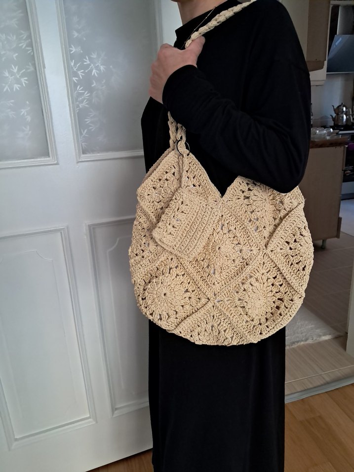 Bej renkli, dantel detaylı örgü kadın çanta. Bohem tarzı ve yumuşak dokusuyla günlük kullanıma uygundur. mango model el emegi urundur herhangi bir sorunu yoktur sifir ambalajlidir (not yengemin el emegi kendisi yapmaktadir istediginiz model olursa yazip isteyebilirsiniz