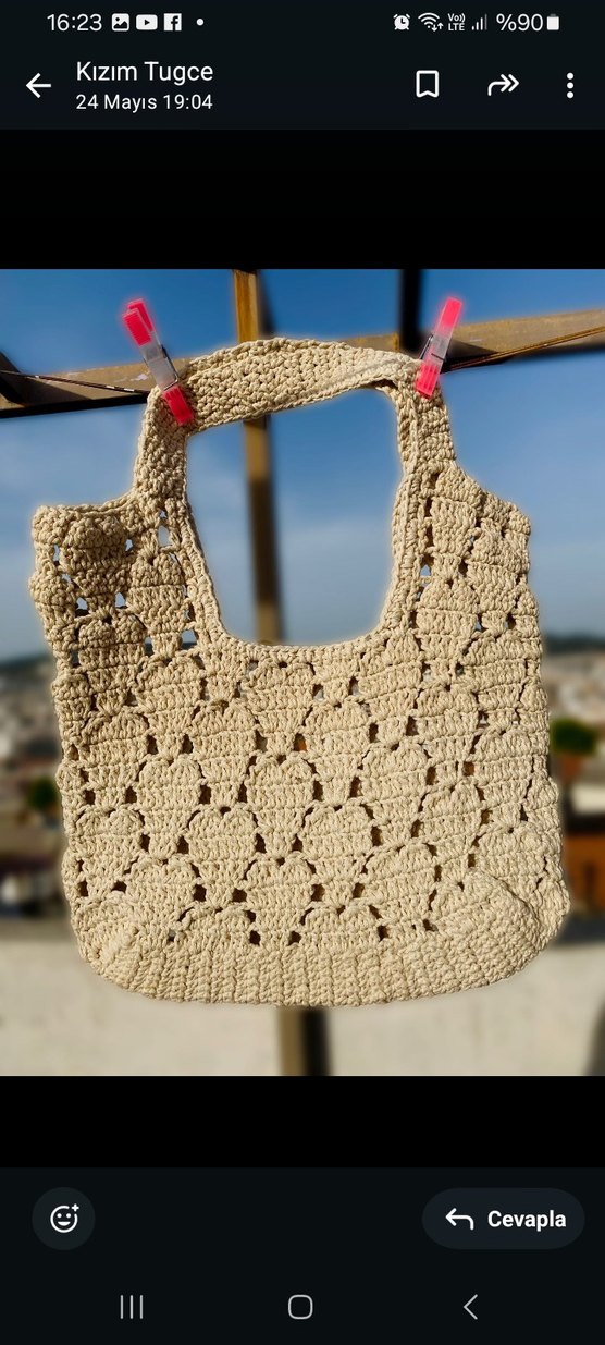 Bej renkte, dantel detaylı örgü kadın çanta. Bohem tarzıyla günlük kullanıma uygun, hafif ve desensiz tasarım.