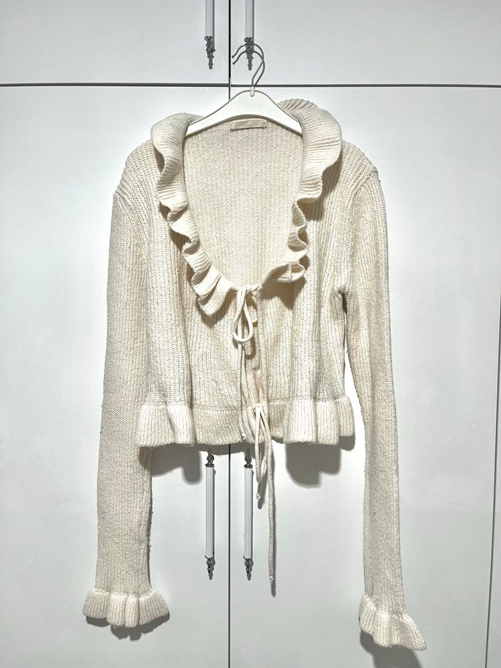 Bej Örgü fırfırlı tatlı hırka