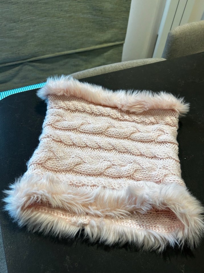 Bej renkte, örgü desenli kadın atkısı, yumuşak peluş detaylarla tamamlanmıştır. Rahat ve bohem bir tarz sunar.