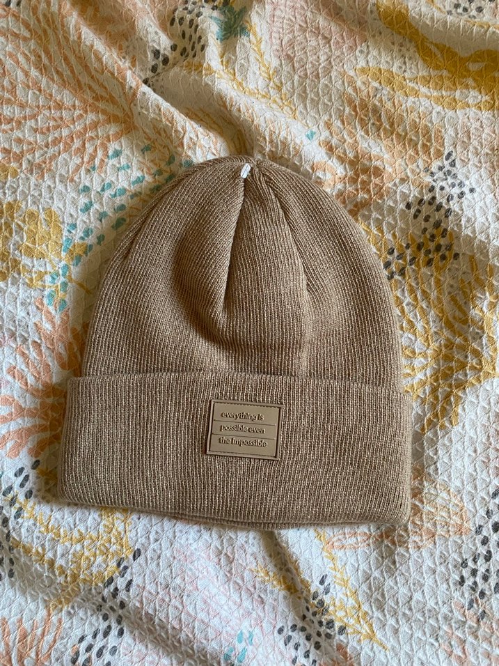 Katlamalı manşetli, yumuşak örgü dokulu bej renkli bere. Rahat, bohem tarzlar için ideal.