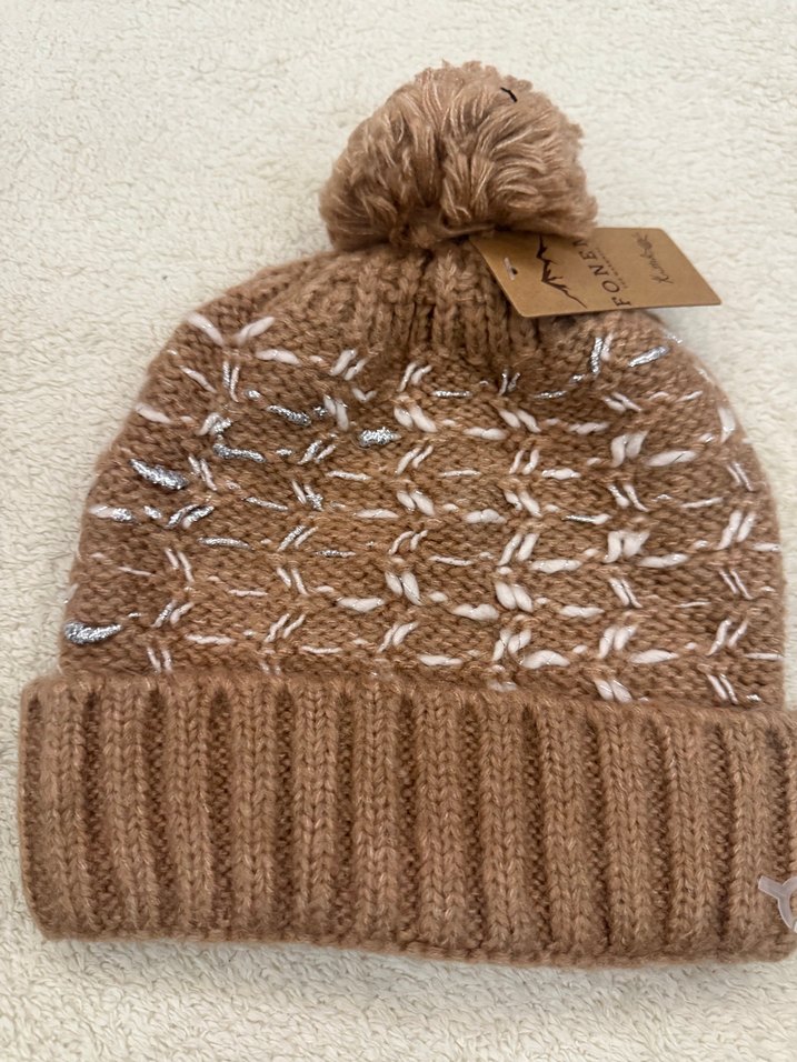 Bej renkli, örgü yapıda kadın bere. Üstünde ponpon bulunan, rahat ve bohem tarzda basic bir model.