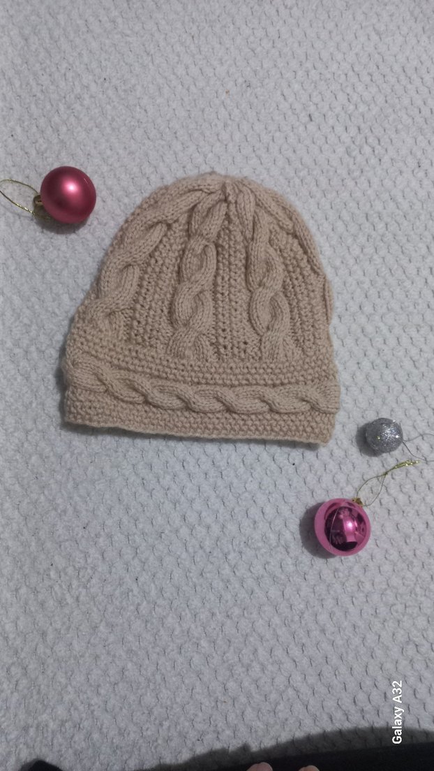 Yumuşak örgü kumaştan yapılmış, bej renkli kadın bere. Rahat ve klasik tasarımıyla soğuk günler için uygundur.