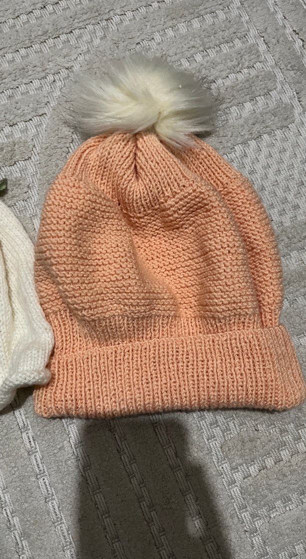 Bej renkli, örgü dokulu kadın bere, üstünde yumuşak tüylü ponpon ile rahat ve sokak modasına uygun bir tasarıma sahip.