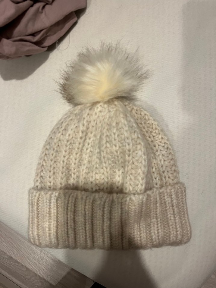 Bej Örgü Kadın Bere Ponponlu
