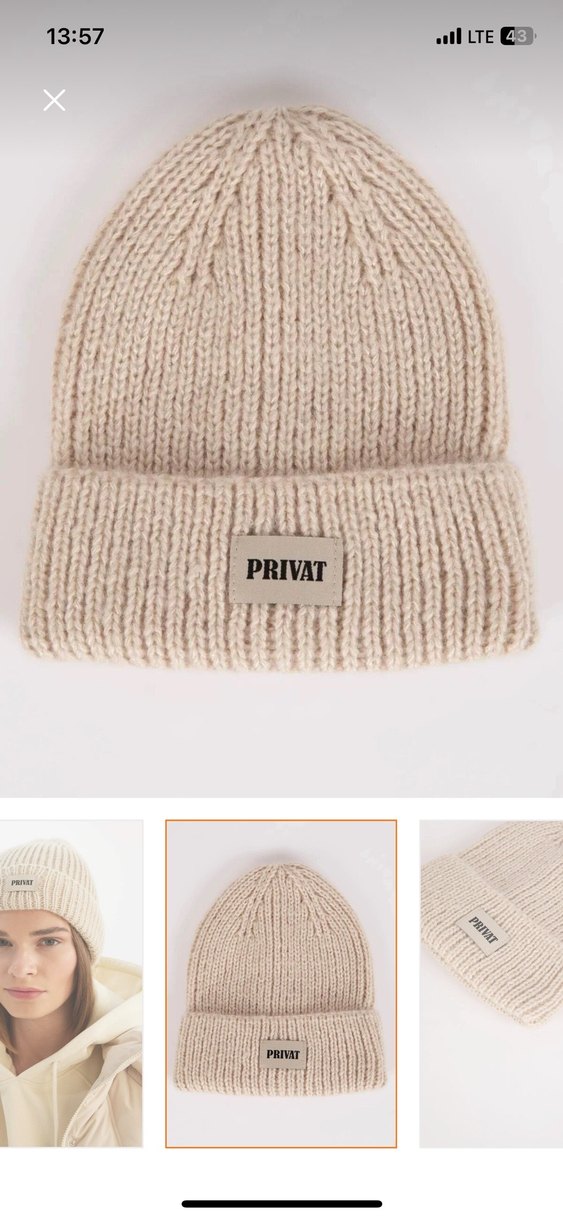 Bej renkli, örgü yapıda kadın bere, yumuşak bir dokusu ve PRIVAT etiketine sahiptir, sokak stili için uygundur.
