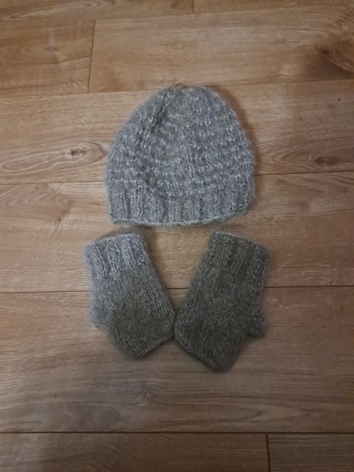 Yumuşak örme kumaştan yapılmış örgü bere ve parmaksız eldiven seti, sade ve bohem tarz için uygundur.