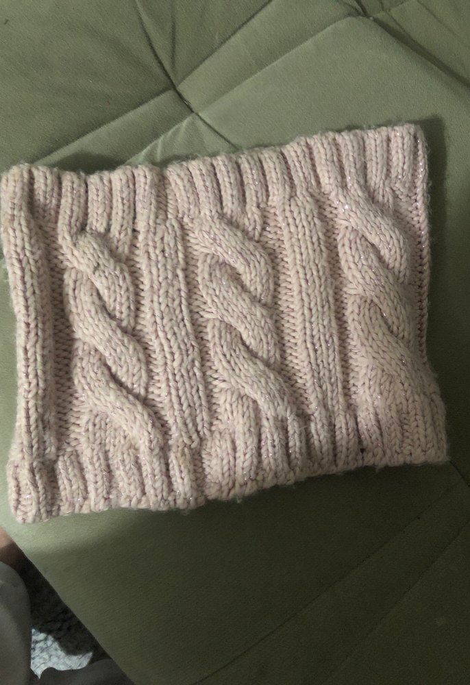 Bej renkli, örgü dokulu kadın boyunluk, rahat ve bohem tarzıyla sıcaklık sağlar.