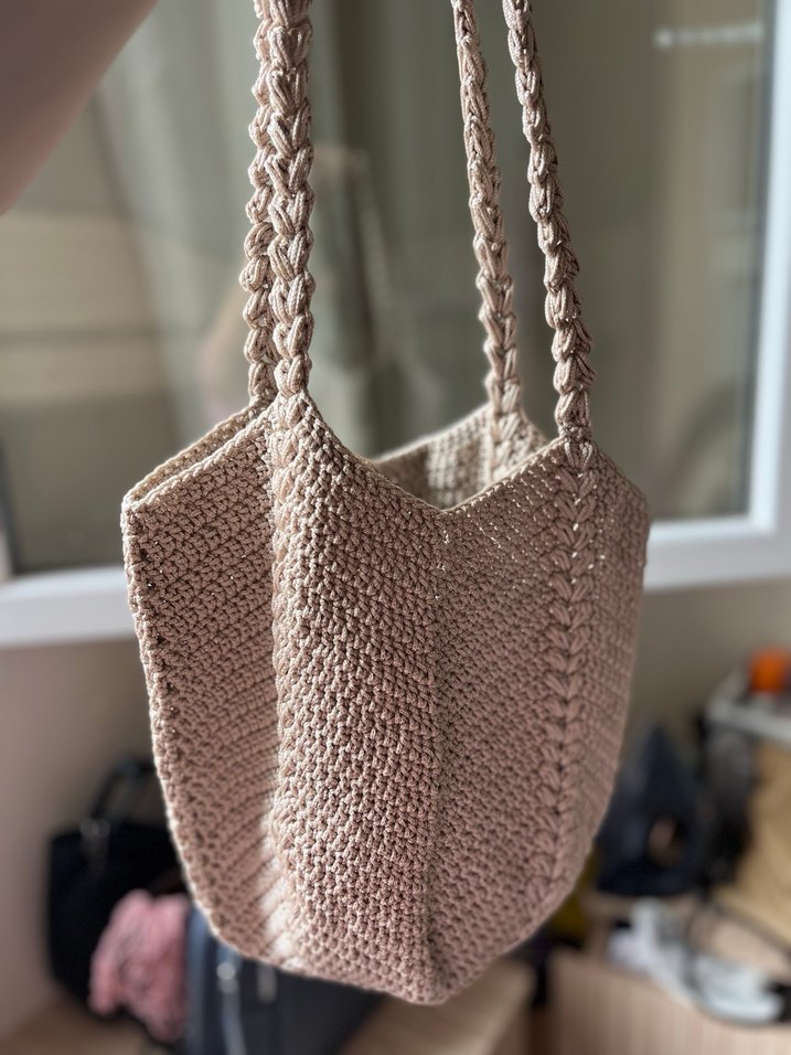 Bej renginde, örgü dokulu kadın çantasıdır. Uzun, örme saplara sahip sade ve desensiz tasarımıyla günlük kullanıma uygundur. İstediğiniz renkte yapılır