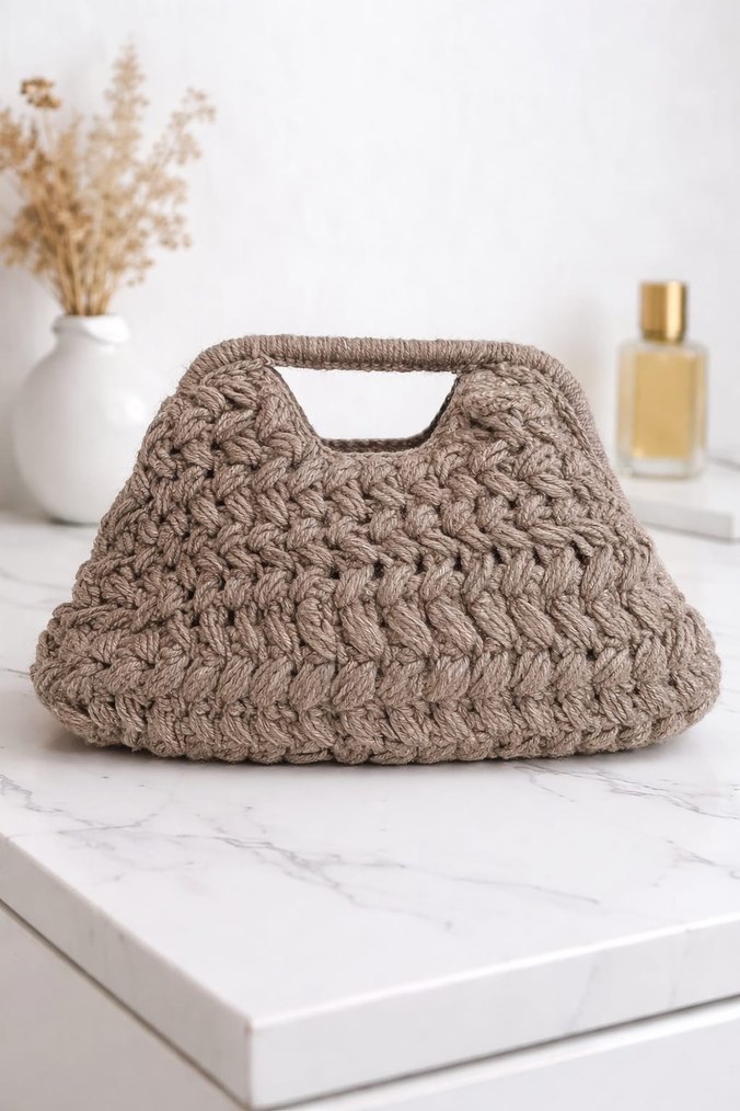 Bej Örgü Kadın Çanta