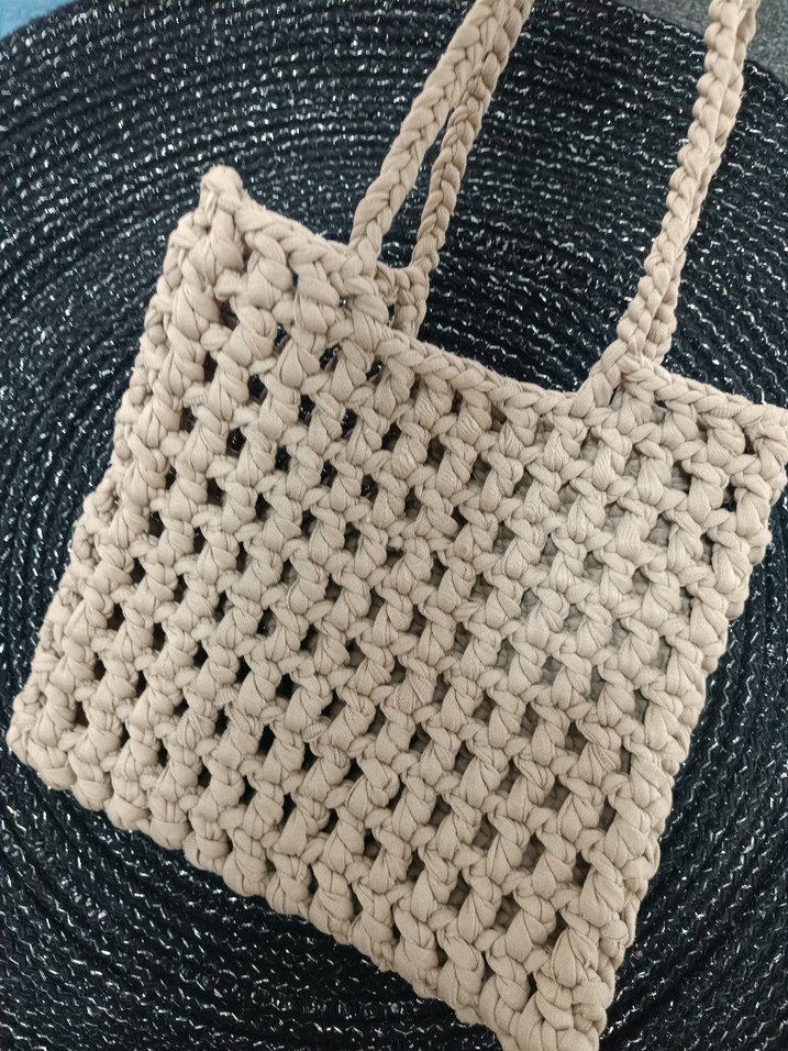Bej renkli, örgü dokulu, bohem tarzda, sade ve rahat kadın çantası, günlük kullanıma uygun. İstenilen renkte sipariş alınır