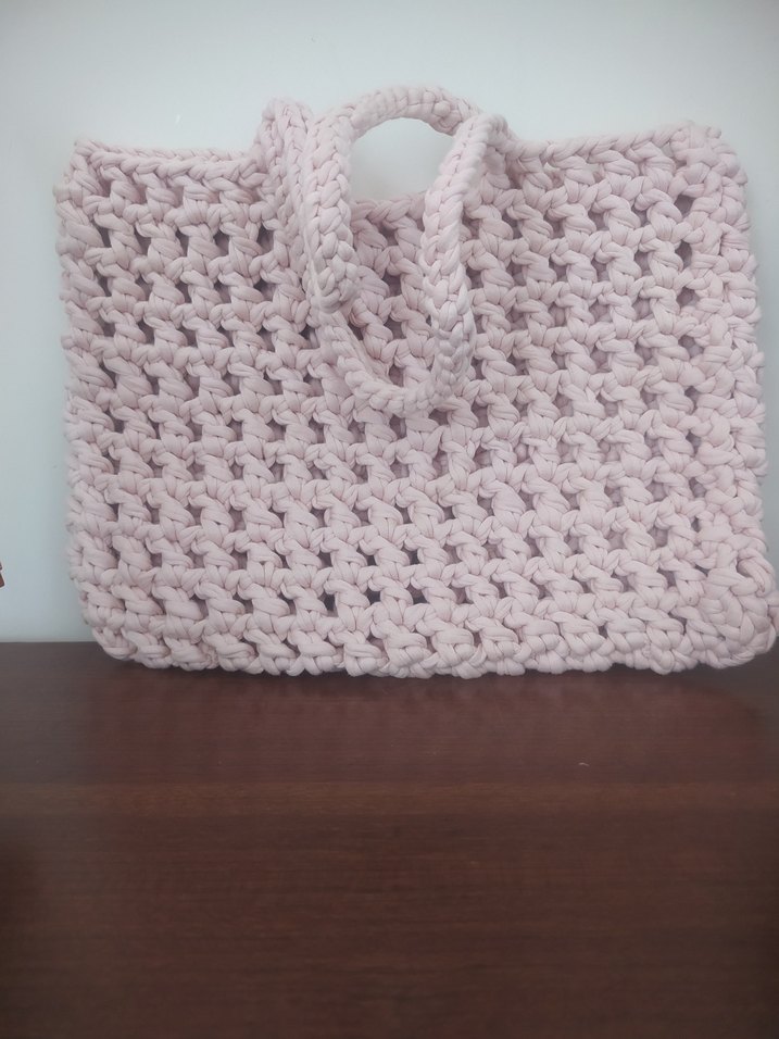 Yumuşak örgü dokusuna sahip bej renkli, sade ve rahat tarzda günlük kullanım için örülmüş kadın çantası.