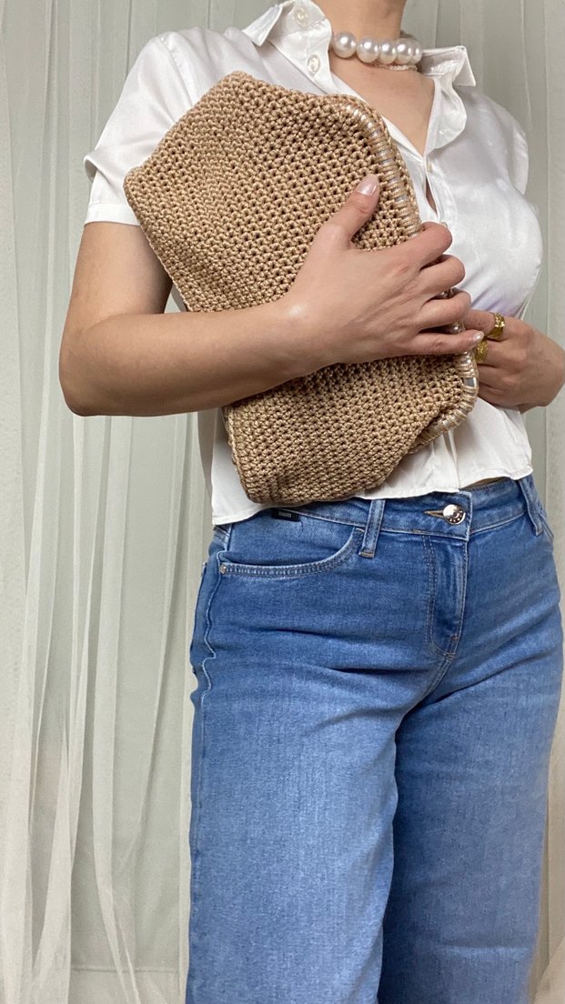 Bej renkli, örgü dokulu kadın clutch çanta, günlük kullanıma uygun hafif ve sade normcore tarzında bir tasarıma sahiptir. Ürün kendi üretimim ve sıfırdır.