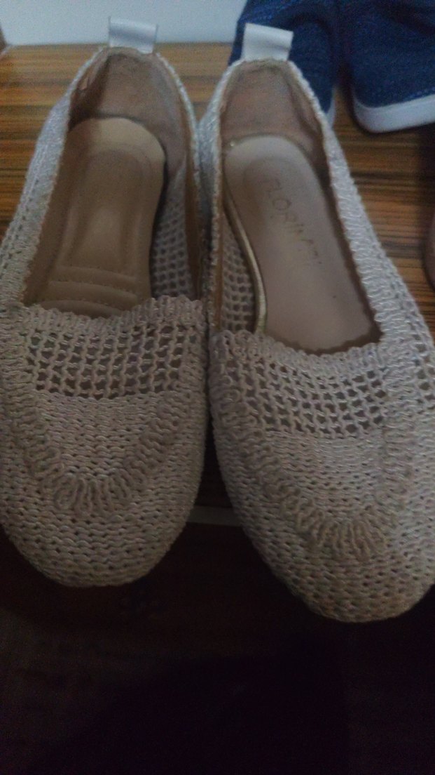 Bej renkli örgü kadın babetler, dolgu topuk ve dantel detaylara sahiptir. Rahat ve bohem tarzıyla günlük kullanıma uygundur.