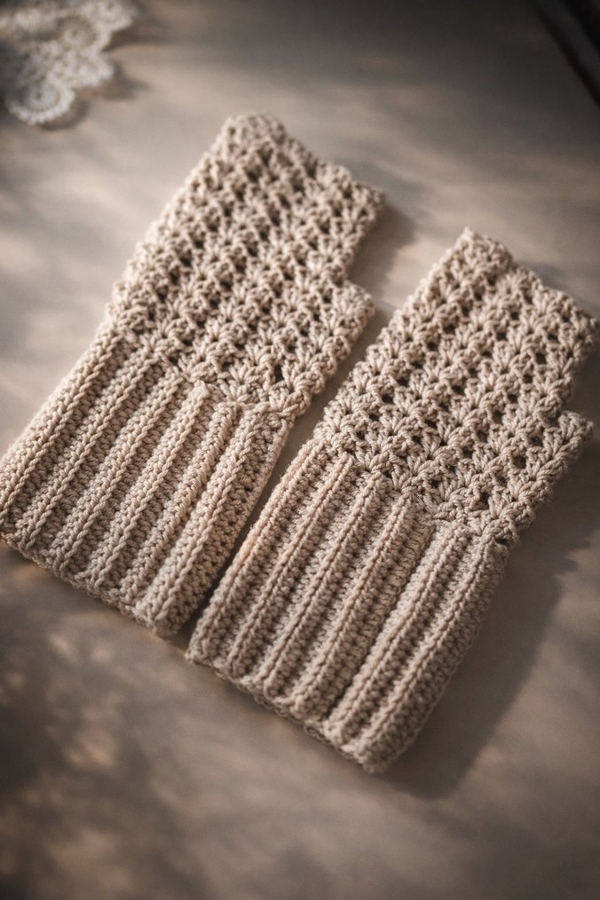 Bej renkli, örgü desenli kadın eldivenler, sıcak ve dokulu bir görünüm sunar.