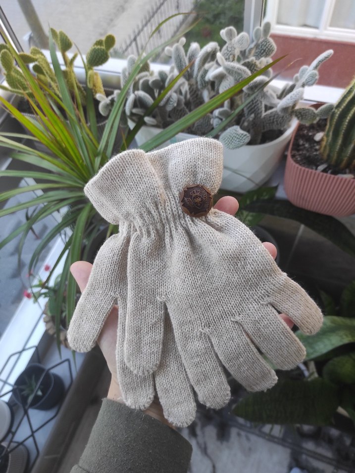 Bej Örgü Kadın Eldiveni