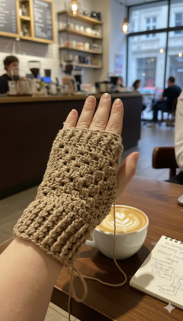 Bej renkli, örgü kadın eldiveni, yumuşak ve rahat dokusuyla bohem tarzda, hafif kullanım sunar.
